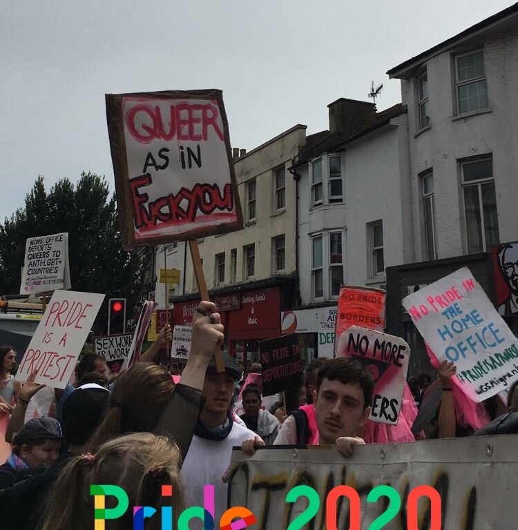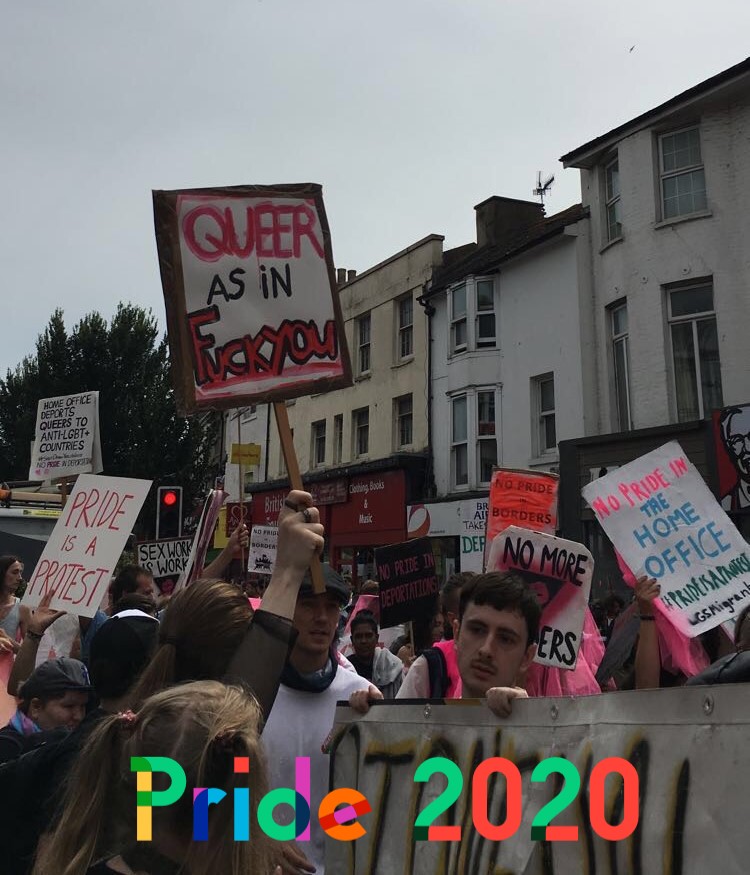 Pride this year might be very different for a lot of people. With the current pandemic, many people are required to stay at home and unfortunately some have been directly affected by the virus itself. The queer community have been hit more than average with many queer people relying incomes such as performance, music and sex work; areas obviously inaccessible during lockdown and the wider pandemic. Some people are also forced to live at home with unaccepting family and others are unable to access support services that would normally be available to them. For example, LGBTQ+ people are much more likely on average to commit acts of self harm or have suicidal thoughts. Homelessness is more prevalent amongst LGBTQ+ people particularly young people and this is obviously a very difficult situation when trying to social distance and isolate. For these reasons, I think Covid-19 at least serves to highlight the injustice and discrimination LGBTQ+ people still face as well as its obvious immediate effects. On a more positive note, 2020 marks 50 years since the formation of the Gay Liberation Front. A political movement founded after stonewall that acted as a catalyst for modern LGBTQ+ activism in the UK, USA and around the world. Closer to my home, it’s 30 years since the first Brighton pride which formed by years of protests by Brighton Area Action against the controversial Section 28. In my opinion, pride 2020 should serve as a time to reflect upon these achievements and injustices of the past and use this to channel the activism and protest that should lead to the support for the marginalised most oppressed communities of today.
