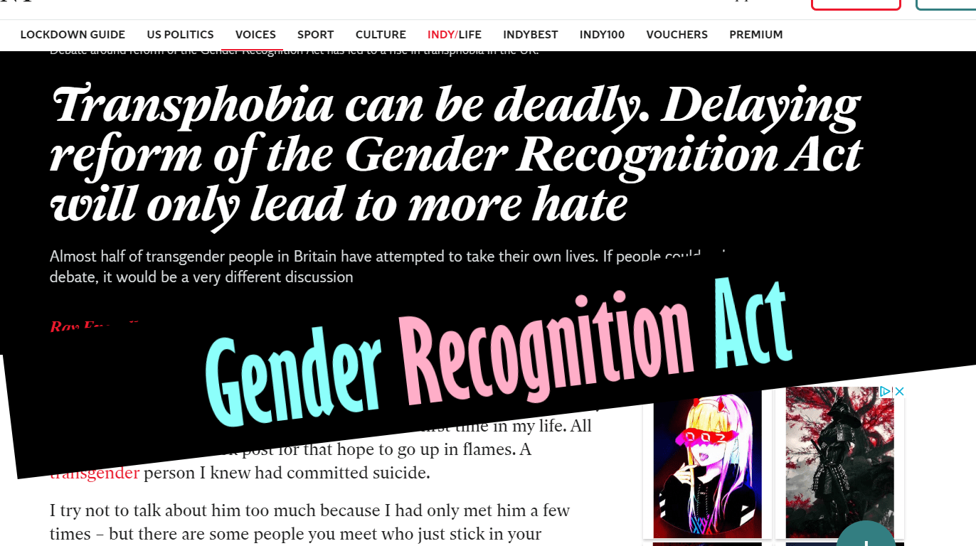 These are the words of Ray Everall a 21 year old student and someone that I know from my time at Sussex university. He is now the trans and non-binary students part time officer at the students union. He has written a fantastic article about the Gender Recognition Act (GRA) and what it, and its reform, means for so many people. I would strongly recommend you take a look and read this all the way through because it really educated me on so many aspects of the difficulties trans and non-binary people face as well as the effect even small changes to areas such as the GRA and self -id can have on people’s lives. I have included the text from the article below. Read his original article written in the independant here